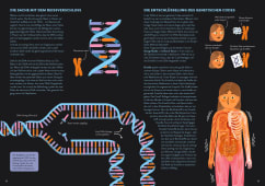 Das Buch führt uns dabei von Mendel und seinen Erbsen-Experimenten, über die Entdeckung der Chromosomen und die Beschreibung der DNA-Struktur bis hin zur Entschlüsselung des gesamten Genoms. Kinder lernen, dass sie aus Zellen aufgebaut sind, was die DNA ist, wo man diese findet und welche Funktion die DNA in ihrem Körper hat. Und noch viel grundlegender: Dass die DNA die Voraussetzung für das Leben und die Vielfalt der Lebewesen auf unserer Erde ist. Außerdem wird in diesem Genetik-Buch gezeigt, was Gentechnik ist und welche großen Potentiale aber auch Gefahren in ihr schlummern. Anwendungsgebiete in der modernen Medizin, Landwirtschaft und Lebensmittelproduktion werden beispielhaft dargelegt. Topaktuelle Themen wie CRISPR und die Corona-Impfung mit mRNA-Impfstoffen sind ebenso enthalten.