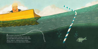 Jack lebt am Meer. Er kann es von seinem Fenster aus sehen und liebt es, mit seinem Vater hinaus zu segeln. Als er bei einem Segelausflug aus Versehen einen Plastikstrohhalm ins Wasser wirft, hat der kleine Junge ein schlechtes Gewissen, aber was soll’s, es ist ja bloß ein kleiner Strohhalm. Doch als Jack am nächsten Morgen erwacht, ist das Meer verschwunden und statt des Wassers ragen überall Müllberge auf. Fischernetze, Plastiktüten und Dosenringe fesseln die Meeresbewohner, und Jack versucht zu helfen. Als er seinen blau-weiß-gestreiften Strohhalm wiederentdeckt, schwört er sich, die Umwelt zu schützen. Da kehrt das Wasser zurück, und ein aufregender Tag endet, der Jack zum Nachdenken gebracht hat. Ein berührendes Bilderbuch, das die Auswirkungen der Meeresverschmutzung kindgerecht darstellt.