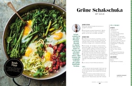 - Eintöpfe, Couscous & Tajines: Tajine mit Bratwürstchen, Grüne Shakshuka mit Sucuk, Kräutercouscous mit Roter Bete und Brokkoli, Gegrillte Aubergine mit Hühnchenragout