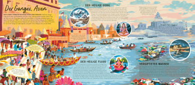 Zudem werden auf großformatigen Ausklappseiten die größten, bedeutsamsten und bekanntesten Wasserstraßen unserer sieben Kontinente vorgestellt. Komm mit zur Donau, zum Amazonas in Südamerika, an den Ganges, den Mississippi, zum Murray in Australien oder an die Ufer des Nils in Afrika. Ein üppig illustriertes Natursachbuch, vollgepackt mit wirklich allem, was es über Flüsse zu wissen gibt!