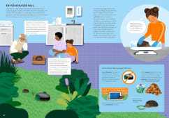 Es werden dabei nicht nur typische Haustiere betrachtet. Das Buch erlaubt auch einen Blick auf die Besonderheiten bei der Behandlung von Wildtieren, von Nutztieren wie Kühen und Schafen und stellt zudem exotische Tiere wie Schildkröten, Echsen und Schlangen vor. Die Kinder können ihr neu erlangtes Wissen anhand von interaktiven Fragen sofort testen und auch bei dem einen oder anderen Krankheitsfall mithelfen, die richtige Diagnose zu finden. Darüber hinaus gibt es viele Tipps, wie die Kinder selbst aktiv werden können, um sich für Tiere und Tierschutz einzusetzen.