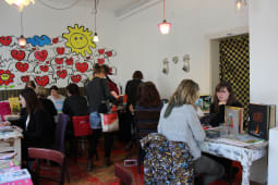 Am 24. Februar fand in Stuttgart die 7. Pressemesse der Kinder- und Jugendbuchverlage statt. In entspannter Kaffeehausatmosphäre präsentierten wir gemeinsam mit Kolleginnen aus den Verlagen Annette Betz/Ueberreuter, Arena, Beltz & Gelberg, Jumbo, Kosmos und Schneiderbuch die Frühjahrsneuheiten und ausgewählte Spitzentitel im Café Zimt & Zucker.