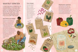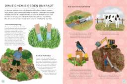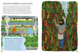 Hier erfahren Kinder, wie Lebensmittel mit ökologischen und nachhaltigen Methoden angebaut werden können und welche Arbeiten rund um das Jahr auf Bauernhöfen in aller Welt anfallen. Von der Bodenpflege im Frühling, über die Schädlingsbekämpfung und Bewässerung im Sommer, von der Ernte und dem Einkochen von Marmelade im Herbst bis zum Schneiden der Obstbäume im Winter. Außerdem bekommen Leser:innen Einblick in nachhaltige Tierhaltung und den Betrieb von Fischfarmen. Darüber hinaus werden innovative Anbautechniken und Hightech-Maschinen vorgestellt, die dabei helfen Lebensmittel umweltschonend zu produzieren. So blicken wir beispielsweise auf Stadt-, Indoor- und Dachfarmen, aber auch auf Farmbots, Drohnen und Melkroboter.